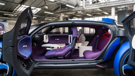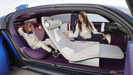 وينتمي النموذج لفئة المركبات الكهربائية ذاتية القيادة، ومنحته الشركة شكل غير تقليدي ملفت للانتباه يضم أبواب في كل جانب يتم فتحها في مواجهة بعض، وبذلك تتوفر مساحة كبيرة لدخول الركاب للسيارة بسهولة شديدة، كما يتميز هذا النموذج بعدة وسائل ترفيهية منها امكانية تحويل الزجاج الأمامي للسيارة لشاشة عرض كبيرة لمشاهدة الأفلام ومقاطع الفيديو.