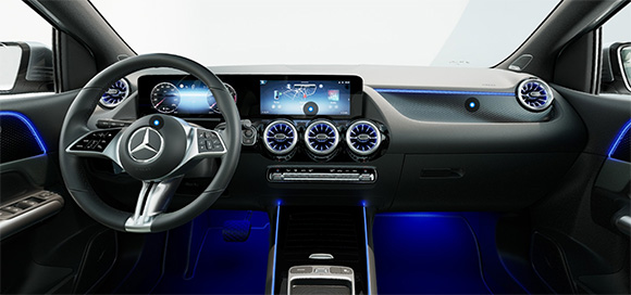 أما المقصورة الداخلية فتوفر مستوى عالٍ من الراحة والتقنيات الحديثة، مع شاشتين عريضتين لنظام المعلومات والترفيه والعدادات الرقمية من نوع MBUX، إلى جانب خامات داخلية راقية ومساحات جلوس واسعة مثالية للعائلات.
